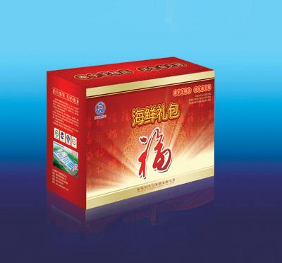 プレゼントの箱、ナマコ、アワビ、海老、夏イガイ、サンマ、サワラ、マナガツオなどさまざまな海産物は、親友の上物を贈(zèng)る。