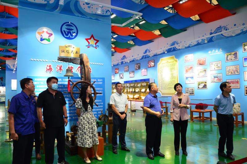 在宇王集團董事長苗強的陪同下,李艷紅一行參觀了宇王集團海洋館產品展示廳,詳細了解了海洋工作發展歷程、海洋產品以及獲得的榮譽、專利等,隨后參觀了宇王集團海洋生物工程有限公司生產車間,觀看產品生產流程,并聽取了集團公司海洋經濟工作開展情況匯報。